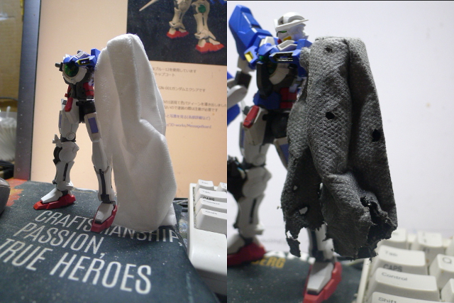 右ひざの黒いのはジャンクから作りました
